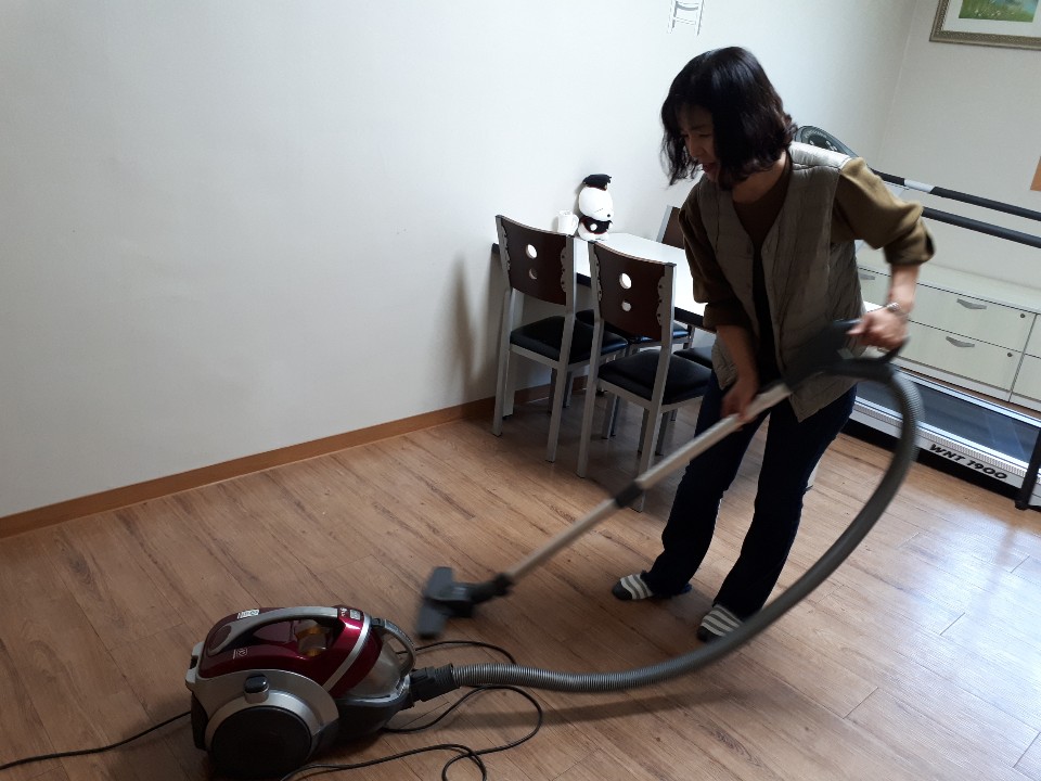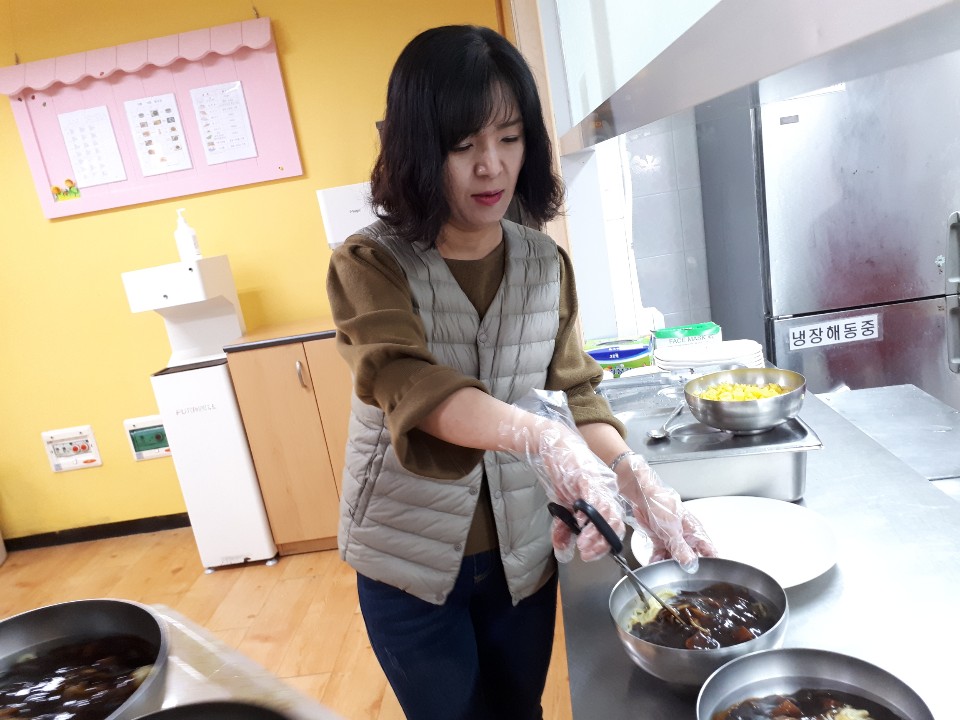 박명옥님이 방문하여 중식배식봉사와 생활관 청소를 도와주셨습니다.