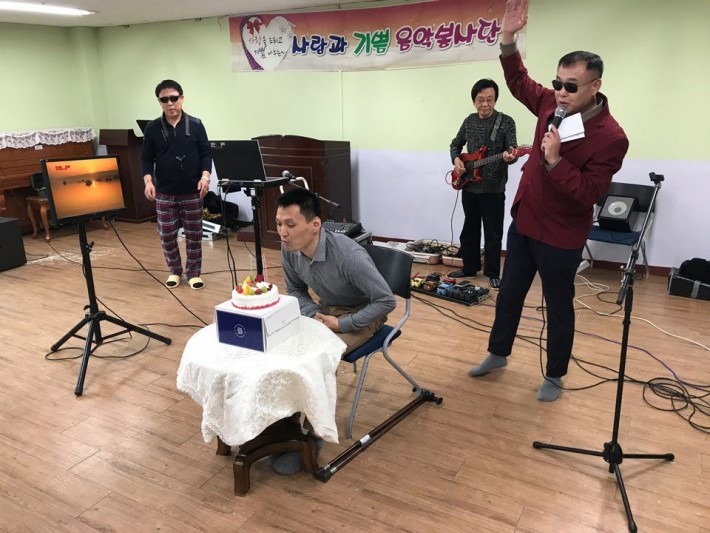 사랑과 기쁨에서 방문하여 맛있는 간식 후원과 함께 생일을 맞은 식구의 생일축하와 레크레이션 봉사를 해주셨습니다. 감사합니다.
