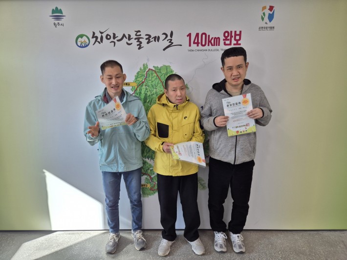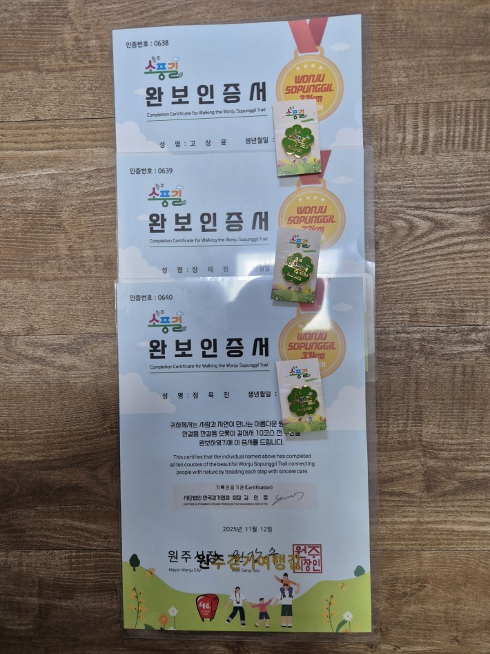 한울타리 가족들도 완보하여 자랑스럽게 인증서와 뱃지를 받았답니다.^^