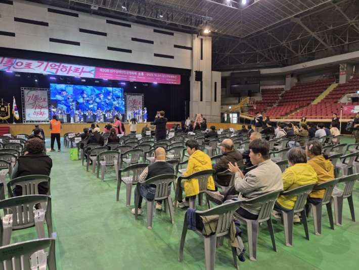 원주치악체육관에서 원주시 시설 이용자, 봉사자 등 300여 명이 참여한 가운데