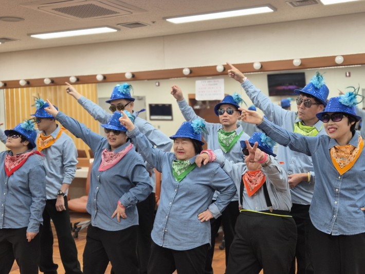 강사님을 통해 열심히 익힌 멋진 댄스를 선보이며