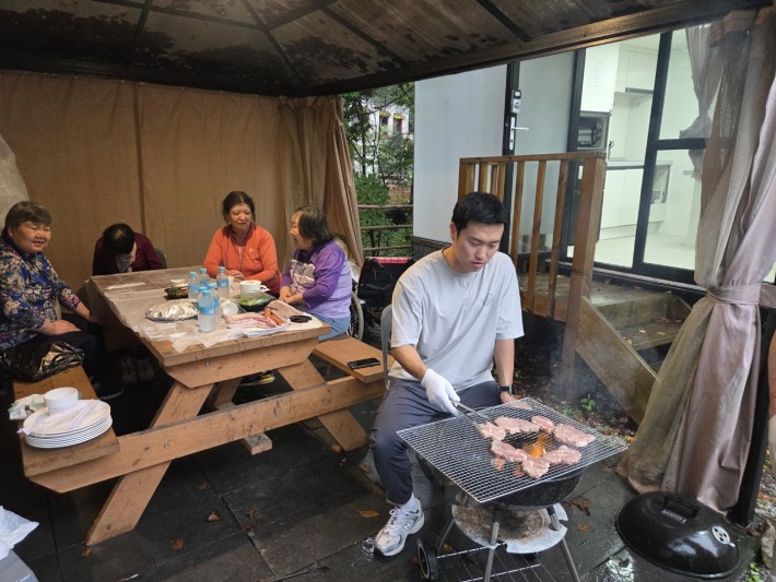 저녁에는 가족들이 가장 기대했던 숯불바베큐 파티로 즐거운 시간을 보내었어요.