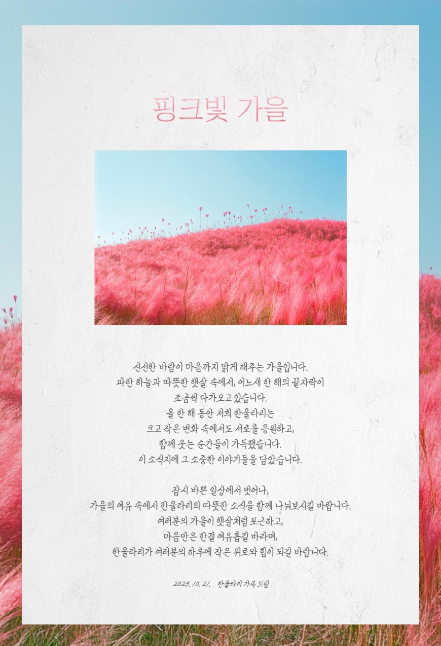 2025년 3분기 한울타리 가족들의 활동내역입니다.