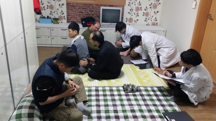 2.14(토) 박창현원장님과 상지대학교 한의학과 학생들이 시설을 방문하여 한방진료를 해주었습니다. 항상 봉사하여주셔서 감사합니다.