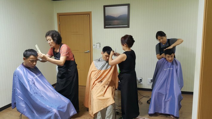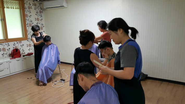 7.20(월) 원주시자원봉사센터 이미용팀에서 시설을 방문하여 식구들에게 예쁜 머리 스타일을 만들어 주셨습니다. 바쁘신 중에도 시설을 방문하여 봉사하여 주셔서 감사합니다.