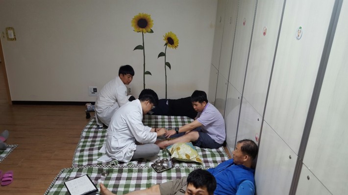 8.8(토) 박창현원장님과 상지대학교 한의학과 학생들이 시설을 방문하여 한방진료를 진행해 주셨습니다. 늦은시간에도 웃음을 잃지 않고 고생하여 주셔서 감사드립니다.