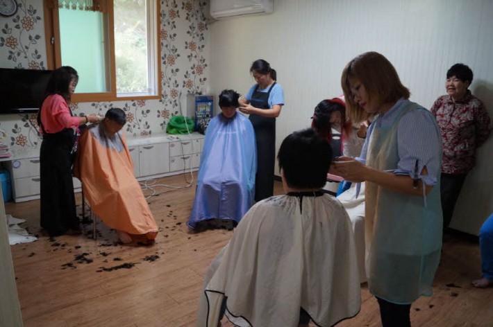 원주시자원봉사센터 이미용팀에서 우리 가족들의 헤어 스타일를 정리해 주었습니다. 고맙습니다.