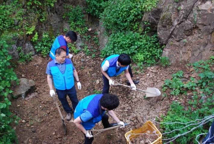 6.5(금) 한국전기안전공사 원주시사 직원들이 시설을 방문하여 시설 뒤 토사정리를 해주었습니다. 항상 봉사하여 주셔서 감사드립니다.