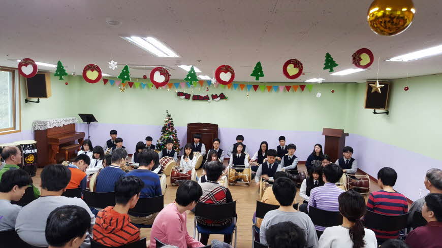 지정중학교 전교생이 공연을 해주었어요. 열심히 연습 한 듯 빛을 발하는 순간이네요^^