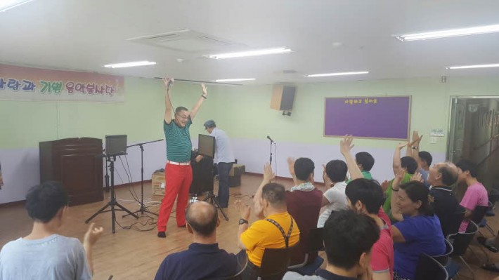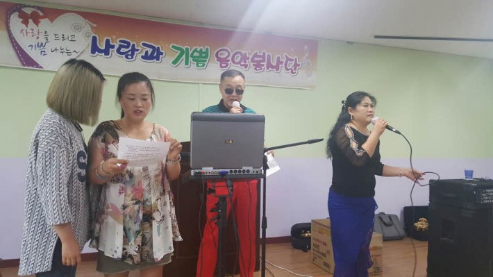 "사랑과 기쁨"과 장미 라이온스 클럽에서 음악 봉사를 해주셨어요.