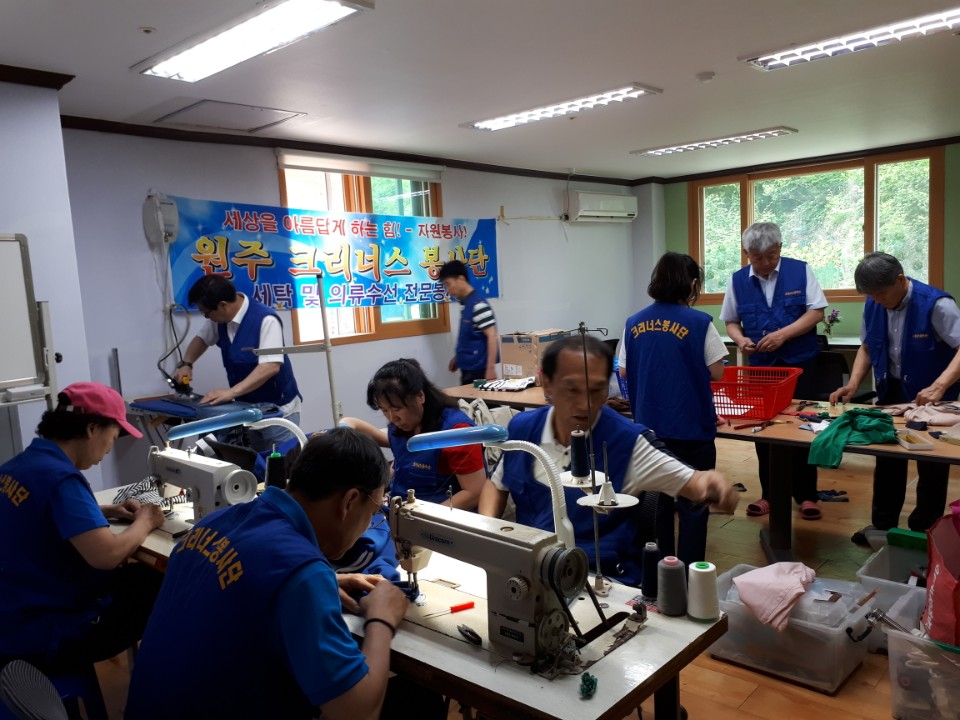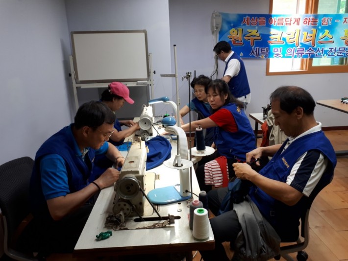 크리너스 봉사단에서 거주인들의 헌 옷들을 수선해주셨니다.