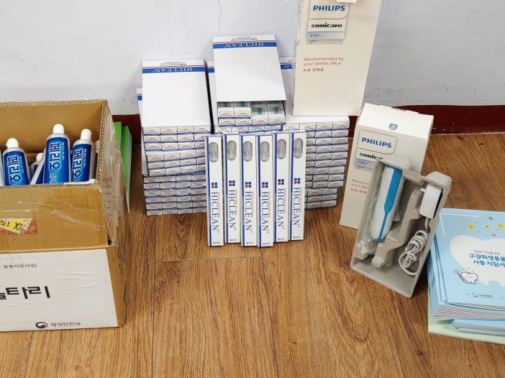 스마일재단과 행정안전부가 함께하는 구강관리 물품지원사업에 선정되어 칫솔과 치약, 전동칫솔을 지원 받았습니다. 감사히 사용하겠습니다^^