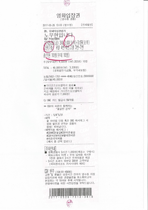 CGV 객석나눔 사업으로 영화 "노무현입니다"를 관람하였습니다.