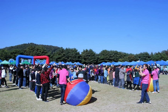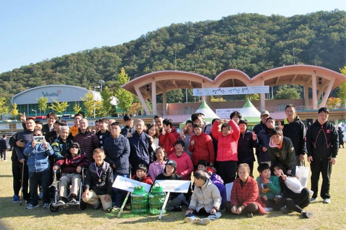원주시 양궁장에서 장애인 한마당축제가 열렸습니다. 푸른 잔디밭에서 맛있는 음식과 즐거운 체험활동을 통해 화창한 가을을 만끽하는 시간이 되었습니다.