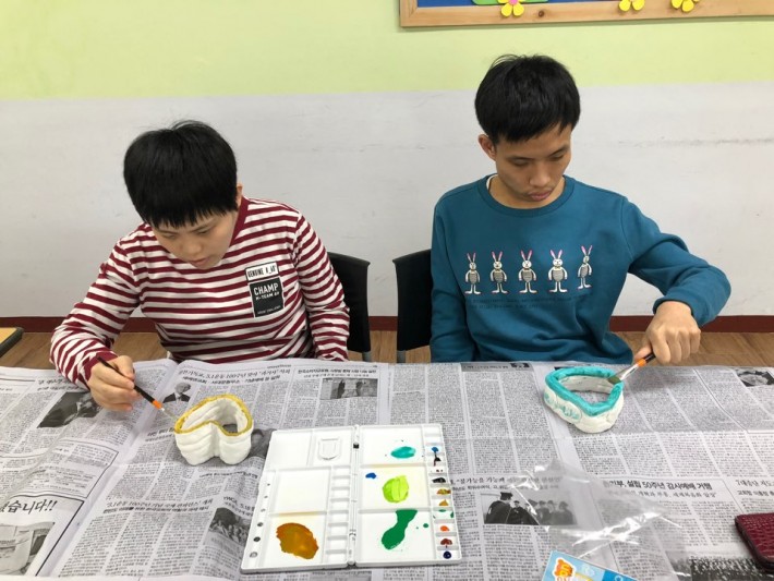 지점토를 이용해 그릇을 만들고 색을 입혀보았습니다~