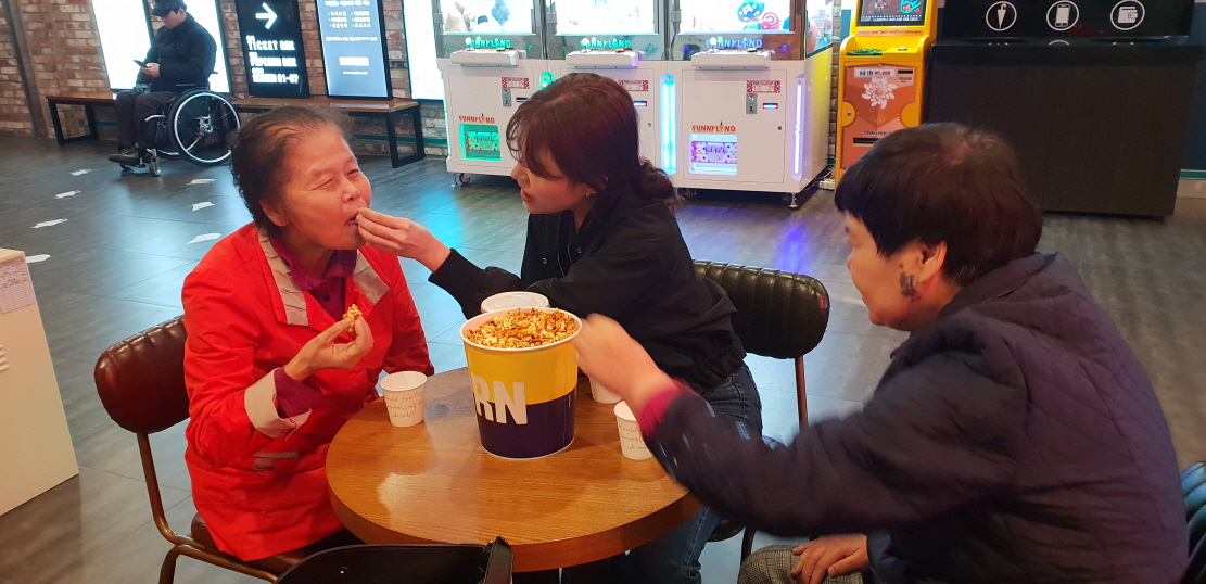 어르신들과 영화관으로 금빛동행을 나섰습니다. 유관순열사의 일대기를 다룬 영화를 함께보며 3.1운동의 의미를 다시금 생각해보는 시간이 되었습니다.