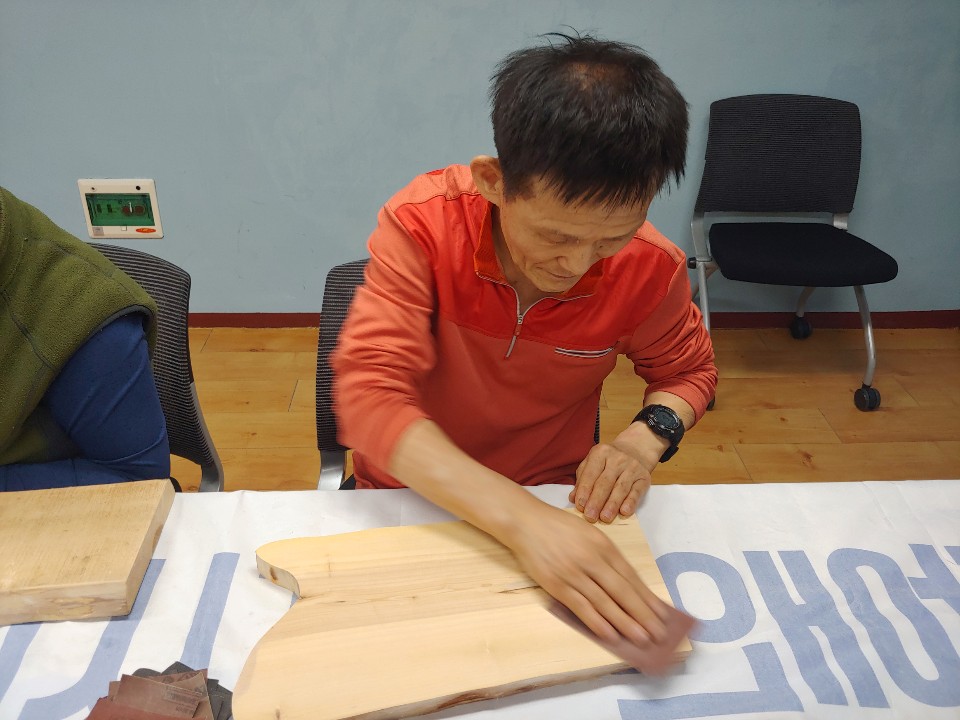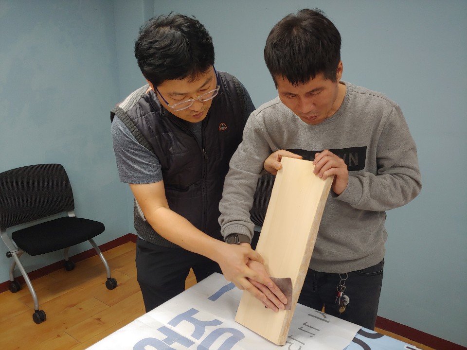 은행나무와 편백나무 원목으로 도마를 만들어보았습니다. 원목에 맞춰 사포를 이용해 다듬고 부쳐블락오일을 도포하는 과정을 진행했습니다.