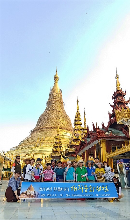 지난 24일부터 28일까지 황금 사원의 나라 미얀마에서 진행된 해외문화체험을 무사히 마치고 돌아왔습니다. 이번 기회를 통해 한울타리 이용인 열다섯분과 함께 평소 접하기 어려웠던 불교문화를 양껏 즐길 수 있었습니다. 미얀마를 여행하기에는 11월에서 2월 사이가 가장 좋다는 말을 들었기에 출발을 앞두고 더위에 대해 걱정도 많았지만, 동선을 잘 조절한 덕분에 그동안 우리 주변에서 쉽게 접할 수 없었던 그네들만의 수수하고 밝은 문화를 경험하는데에는 어려움은 없었던 것 같습니다. 이번 여행을 위해 지원해주시고 기도해주신 많은 분들께 다시 한번 감사드립니다.