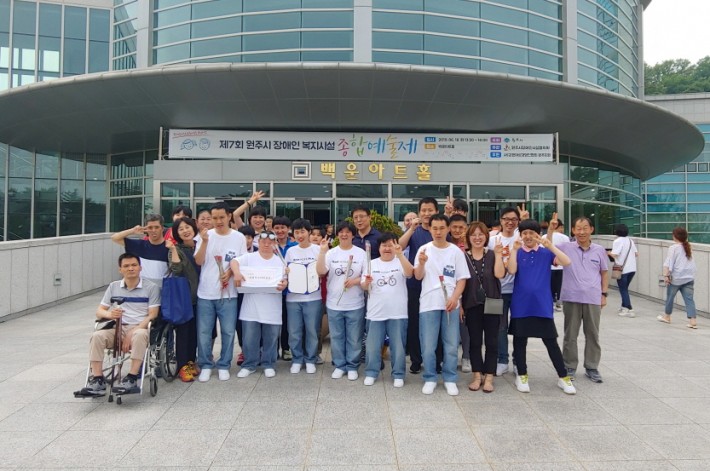 원주시 관내 장애인복지시설의 장애인들이 모여 감춰둔 열정과 끼를 발산하는 종합예술제가 원주 백운아트홀에서 열렸습니다. 한울타리에서도 뚝딱뚝딱공작소에서 제작한 목공작품을 전시하고 지팡이를 이용한 공연을 선보였습니다. 더욱이 김미래 선생님께서 원주시장상을 수상하셔서 더욱 뜻깊은 시간이 되었던것 같습니다. 행사를 준비하고 참여한 모든 분들께 감사드립니다.