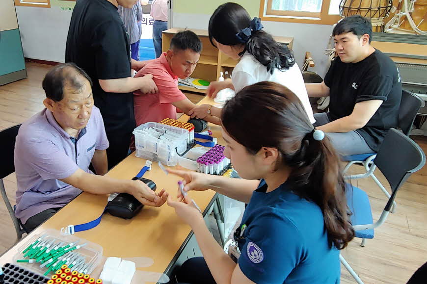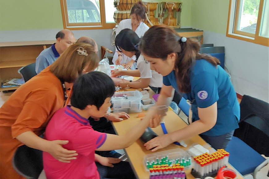 한울타리 원내에서 정기건강검진이 있었습니다. 매년 원주의료원 공공의료팀에서는 이동이 불편한 우리 이용인들을 위해 이동검진차량을 이용한 방문건강검진을 지원해주고 있습니다.
