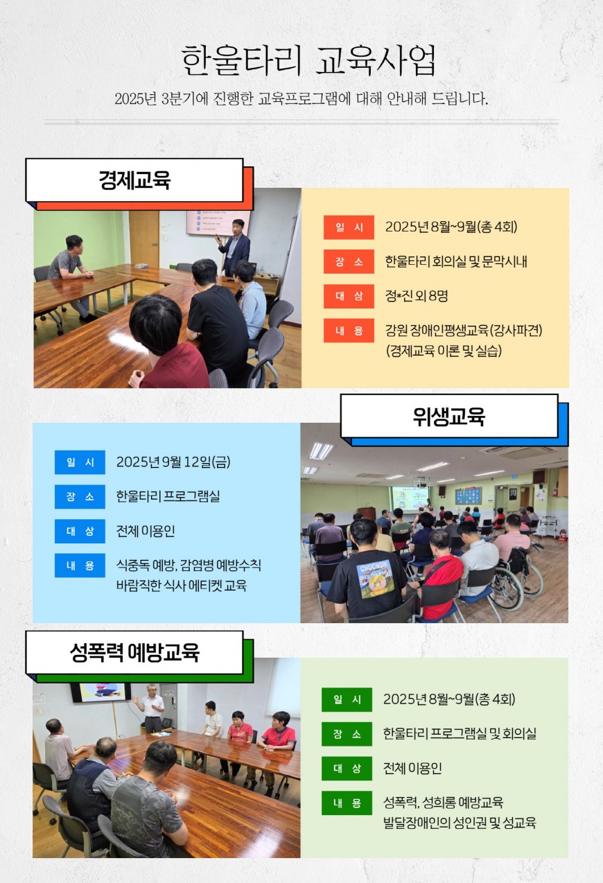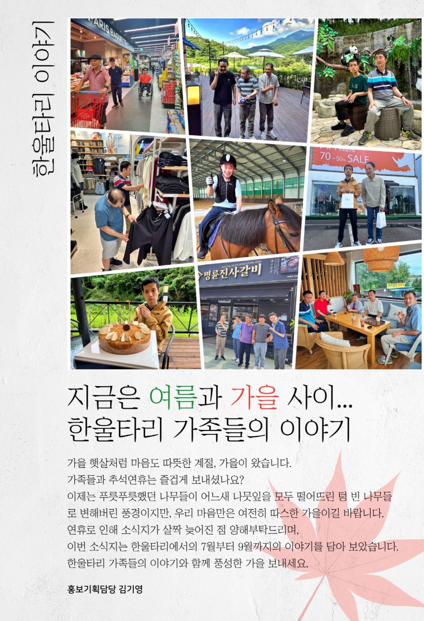 2025년 3분기 한울타리 가족들의 활동내역입니다.